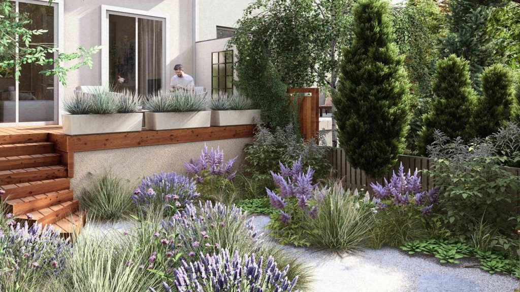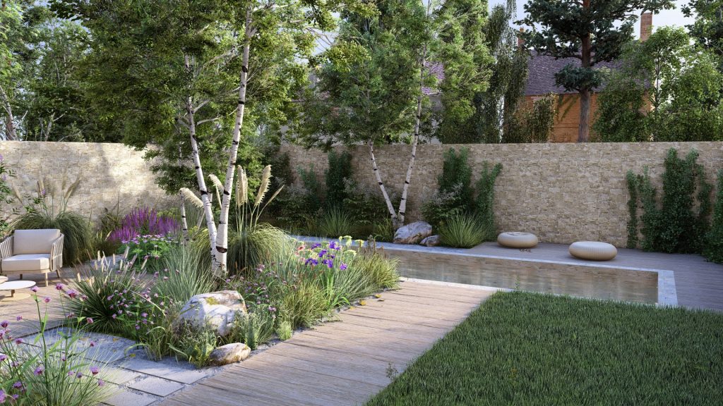 W projektach nakłaniam do zastępowania tradycyjnych wielkich połaci trawników żywymi, pełnymi kolorowych kwiatów łąkami, które przyciągają owady i są odporniejsze na suszę. Jako świadoma projektantka, zdaję sobie sprawę z wpływu zmian klimatycznych na nasze otoczenie. Wierzę, że nowo projektowane ogrody powinny dostosowywać się do tych zmian, stając się odporne na ekstremalne warunki pogodowe i wykorzystywać zrównoważone praktyki w zarządzaniu wodą oraz ochronie gleby.